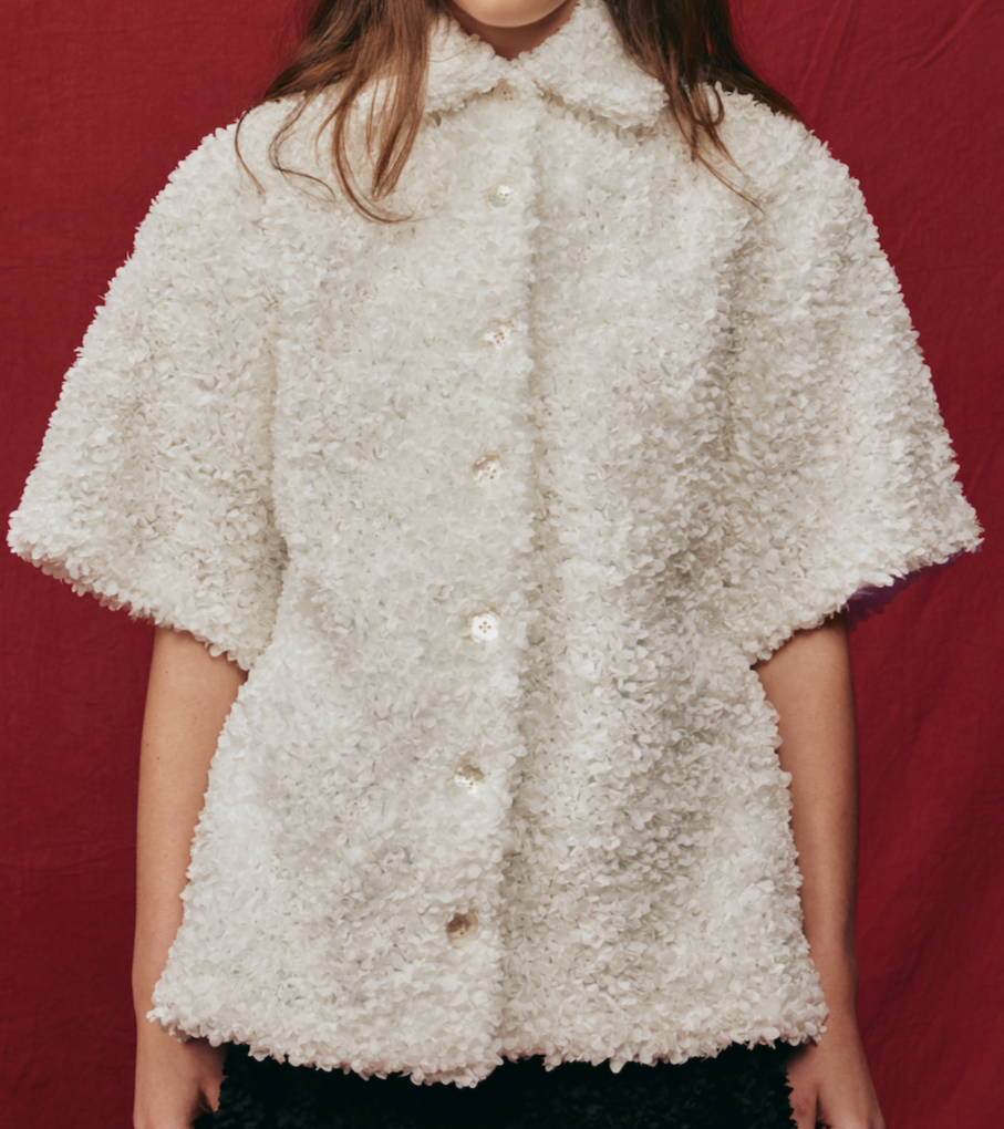 crafted from a Spanish textile created by a family-owned mill established in 1940, composed of individually cut floral petals.